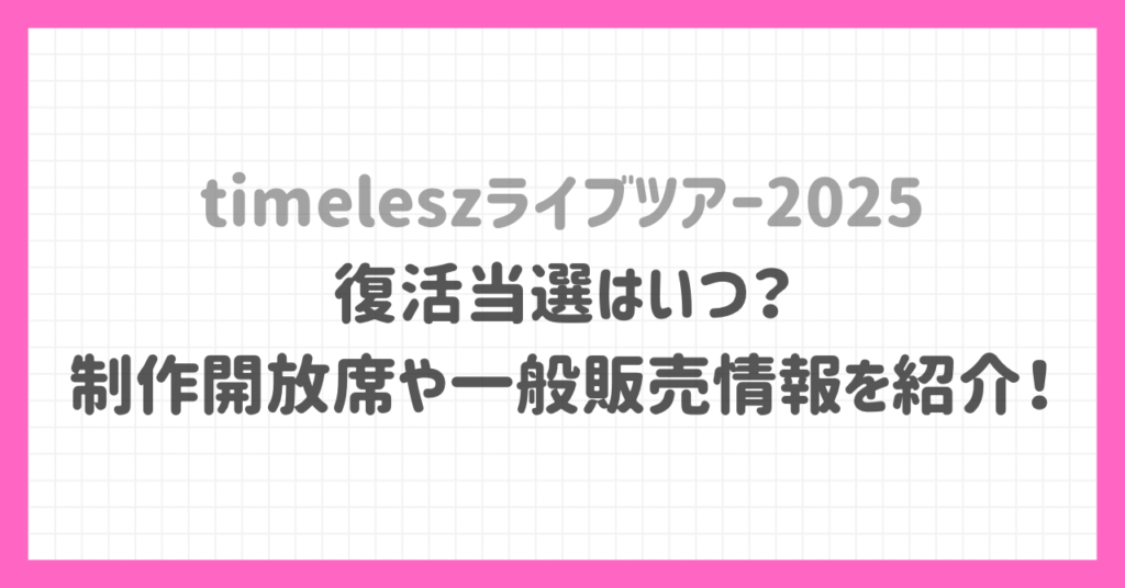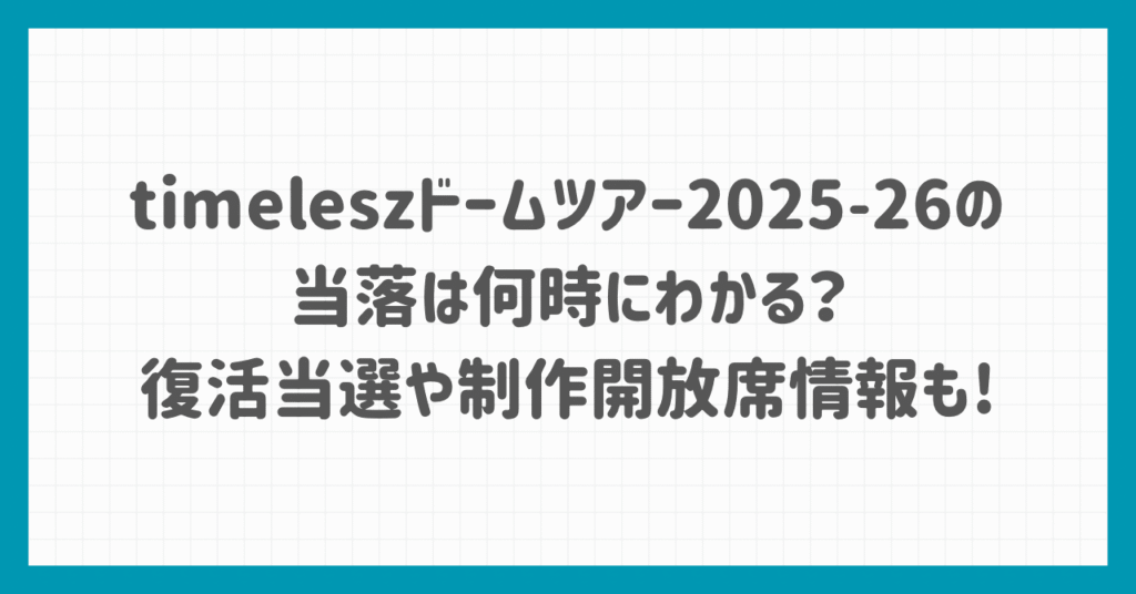 timeleszドームツアー2025-26の当落は何時にわかる?復活当選や制作開放席情報も!