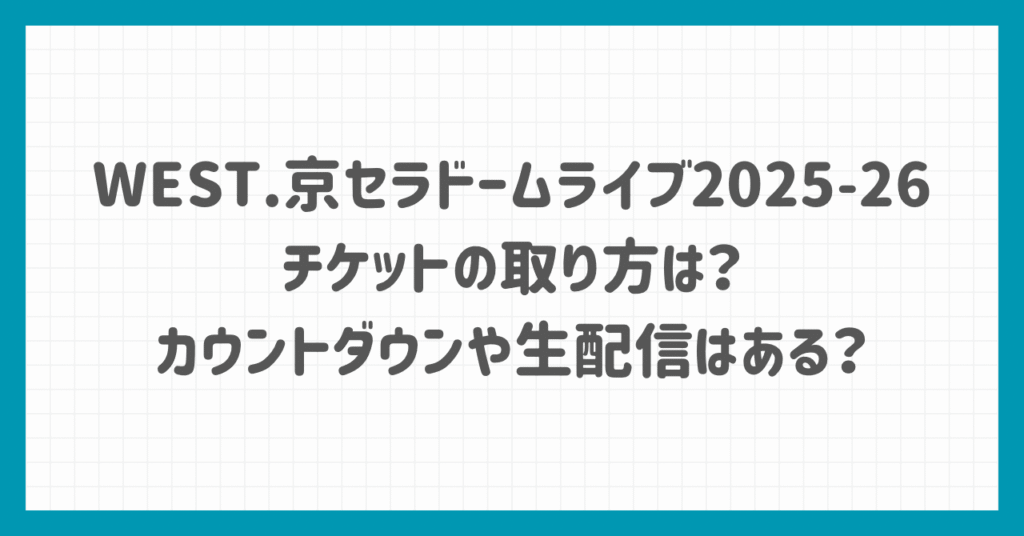 WEST.京セラドームライブ2025-26チケットの取り方は?カウントダウンや生配信はある?