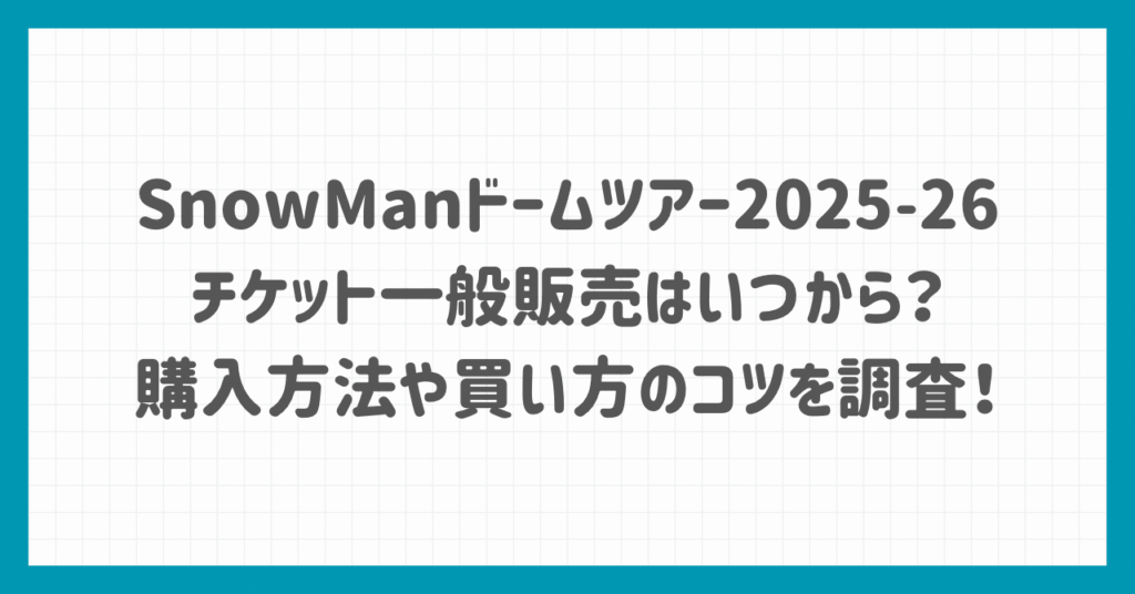 SnowManドームツアー2025-26チケット一般販売はいつから?購入方法や買い方のコツを調査!