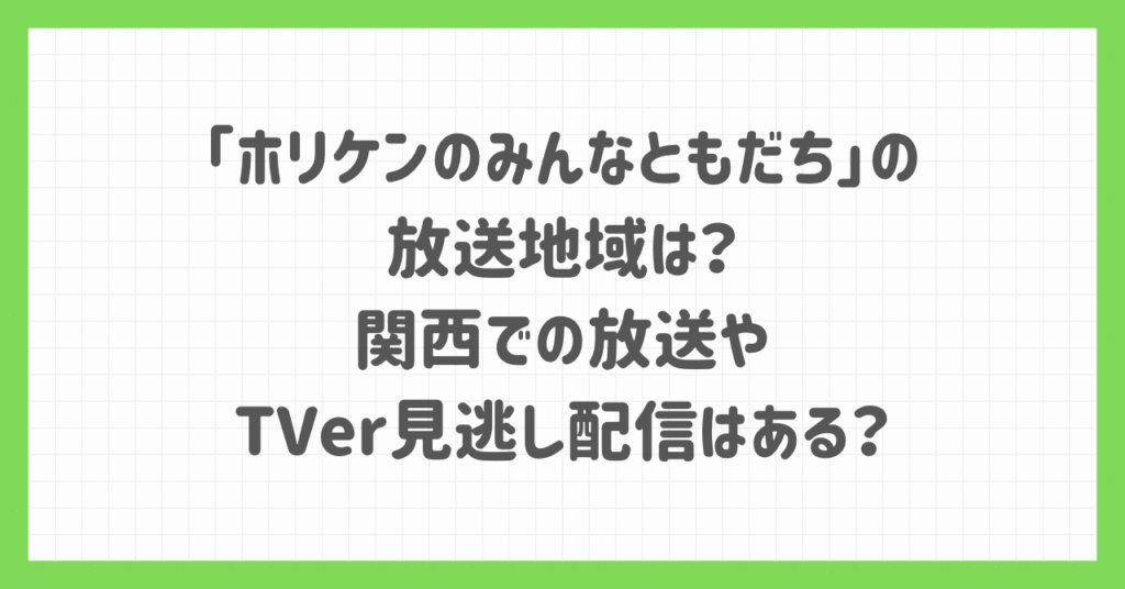 「ホリケンのみんなともだち」の放送地域は?関西での放送やTVer見逃し配信はある?