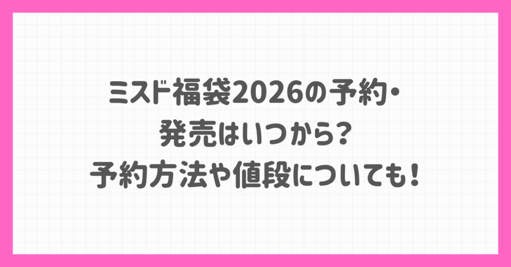毎年話題になるミスタードーナツの福袋、2026年版も近づいてきました! 現時点では公式情報は未発表ですが、過去の福袋のパターンも参考にしつつ、この記事では、ミスド福袋2026の発売日・予約開始日・予約方法・値段・過去の傾向をまとめています。 「予... -