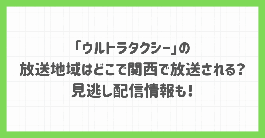 「ウルトラタクシー」の放送地域はどこで関西で放送される?見逃し配信情報も!