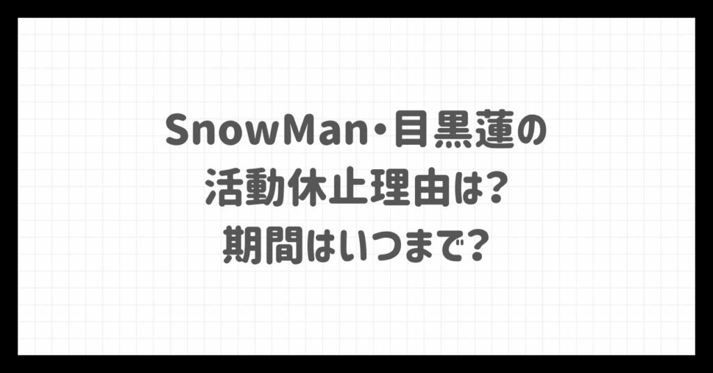 2025年11月18日(火)にSnow Manのファンクラブ向けにお知らせが更新されました。 お知らせの内容はSnow Manのメンバーである目黒蓮さんが2026年の活動を休止するということでした。 お知らせが発表されたタイミングでは、アクセスが殺到し、ファンクラブ... -
