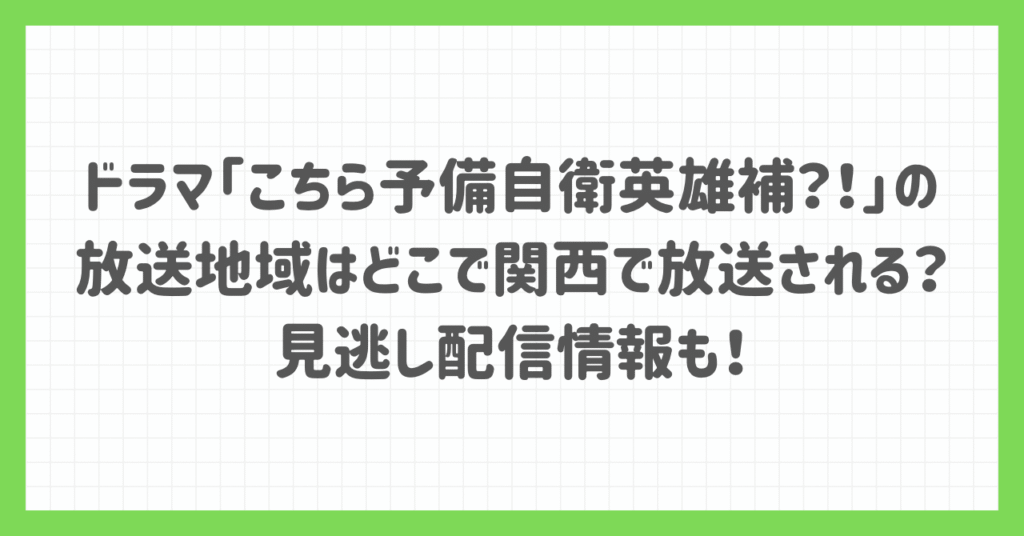 ドラマ「こちら予備自衛英雄補?!」の放送地域はどこで関西で放送される?見逃し配信情報も!