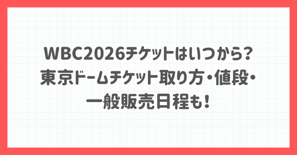 WBC2026の日程が発表され、2026年3月5日〜10日に行われる第1ラウンドのプールCの試合が東京ドームで行われます。 WBC2026が日本でも開催されるということで行きたいと考えている人も多く争奪戦も予想されますが、WBC2026チケットはいつから発売されるので... -