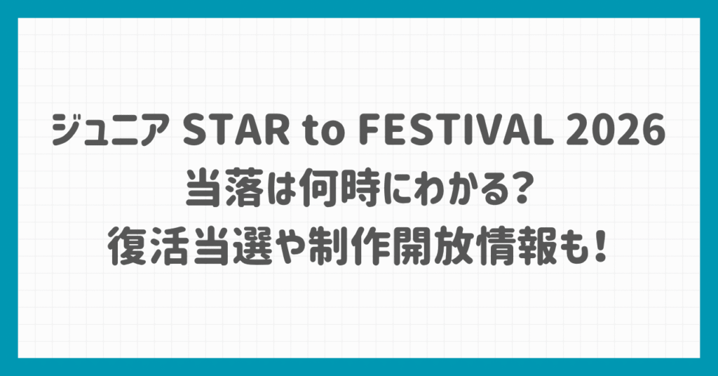 ジュニア STAR to FESTIVAL 2026の当落は何時にわかる?復活当選や制作開放情報も!
