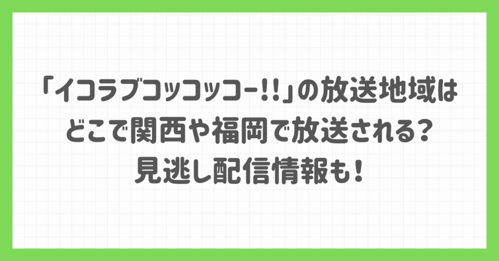 「イコラブコッコッコー!!」の放送地域はどこで関西や福岡で放送される?見逃し配信情報も!