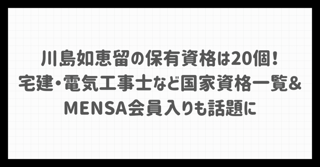 川島如恵留の保有資格は20個!宅建・電気工事士など国家資格一覧&MENSA会員入りも話題に