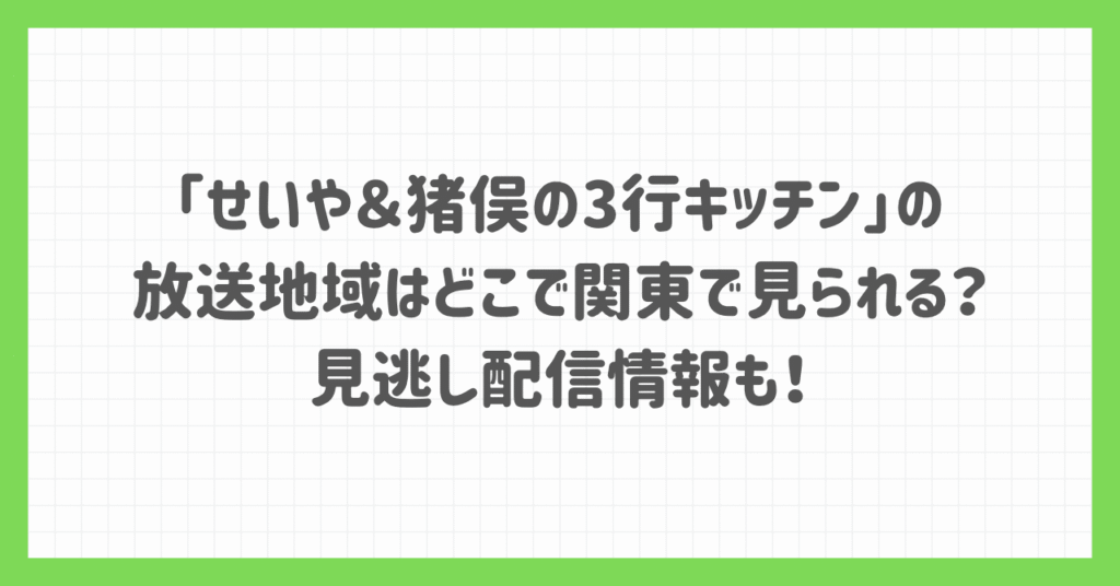 「せいや&猪俣の3行キッチン」の放送地域はどこで関東で見られる?見逃し配信情報も!