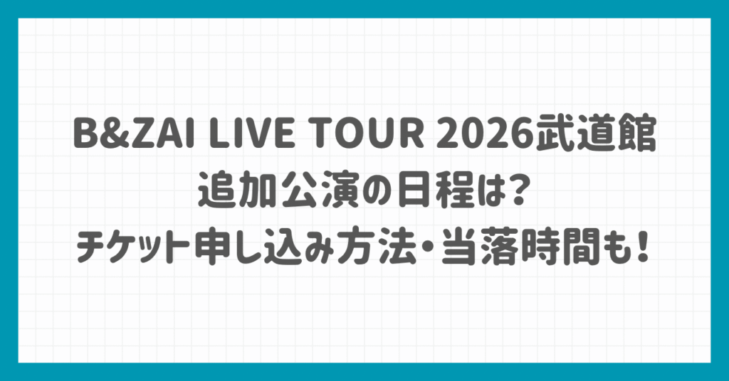 B&ZAI LIVE TOUR 2026武道館追加公演の日程は?チケット申込方法・当落時間も!