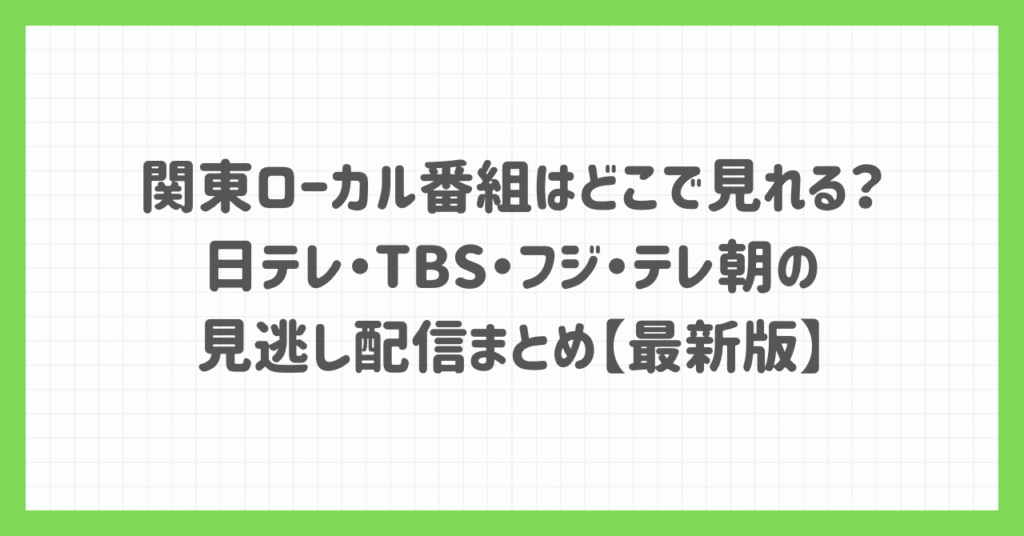 関東ローカル番組はどこで見れる?日テレ・TBS・フジ・テレ朝の見逃し配信まとめ【最新版】