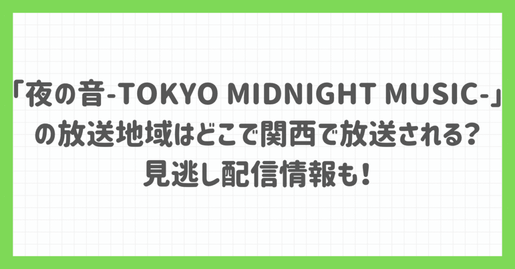 「夜の音-TOKYO MIDNIGHT MUSIC-」の放送地域はどこで関西で放送される?見逃し配信情報も!