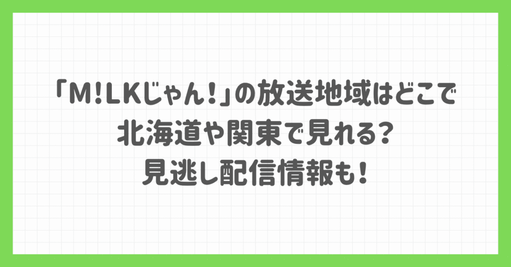 「M!LKじゃん!」の放送地域はどこで北海道や関東で見れる?見逃し配信情報も!