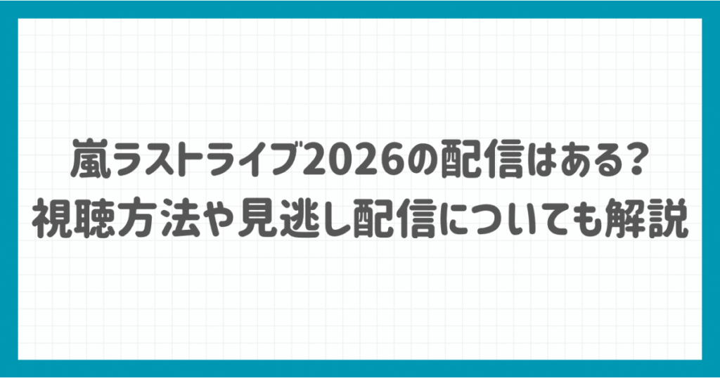 嵐ラストライブ2026の配信はある?視聴方法や見逃し配信についても解説