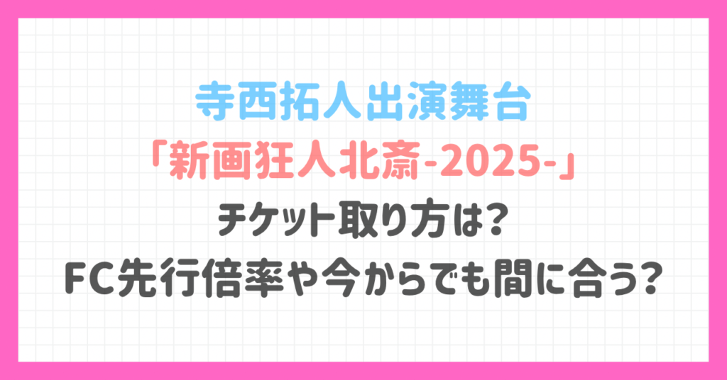 寺西拓人出演舞台「新画狂人北斎-2025-」チケット取り方は?FC先行倍率や今からでも間に合う?