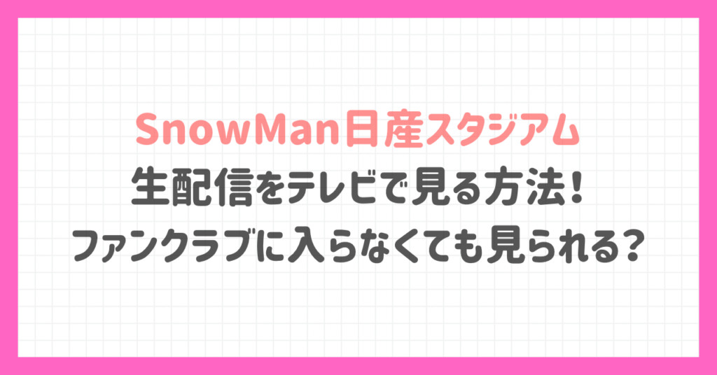 SnowMan日産スタジアム生配信をテレビで見る方法!ファンクラブに入らなくても見られる?