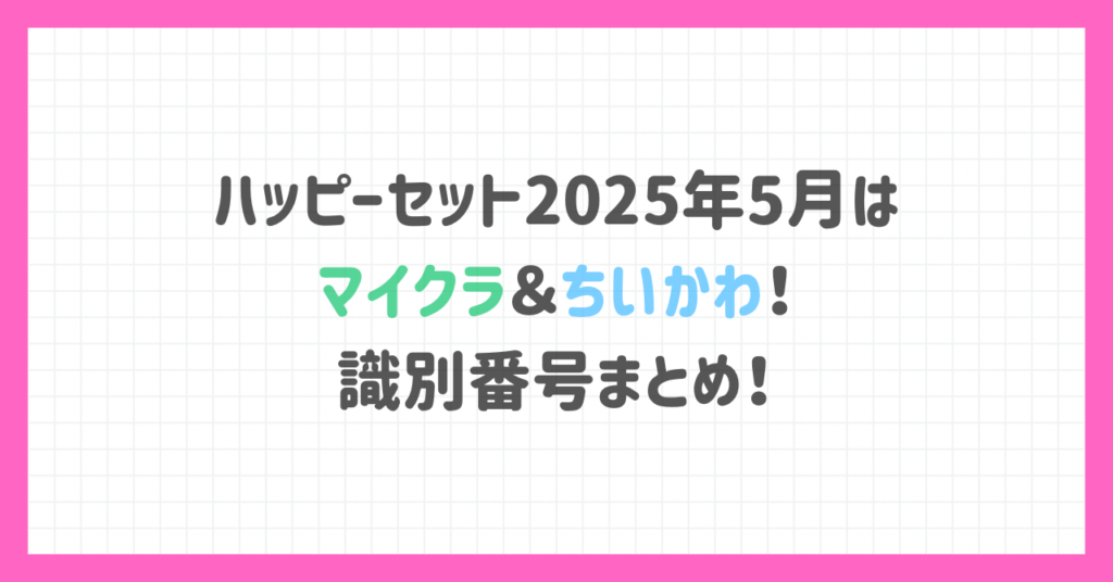 ハッピーセット2025年5月のおもちゃはマイクラ&ちいかわとなっています。 子どもも大人も好きな人が多く、お目当てのおもちゃもあるのではないでしょうか? ハッピーセットのおもちゃには識別番号があり、開封前に識別番号を確認するとあらかじめどのおも... -