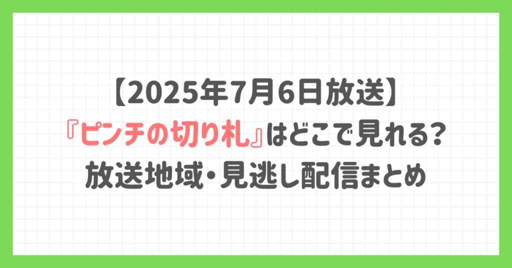 【2025年7月6日放送】『ピンチの切り札』はどこで見れる?放送地域・見逃し配信まとめ