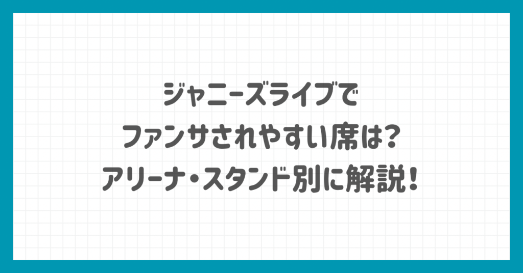 ジャニーズライブ(現スタエンライブ)といえば、間近で推しに手を振ってもらえる「ファンサ」は大きな楽しみのひとつですよね。 でも実際、ファンサをもらいやすいのはどんな席なのか気になる人も多いでしょう。 ファンサをもらえるのはアリーナだけじゃ... -