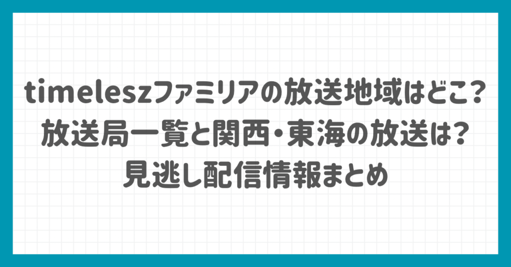 timeleszファミリアの放送地域はどこ?放送局一覧と関西・東海の放送は?見逃し配信情報まとめ