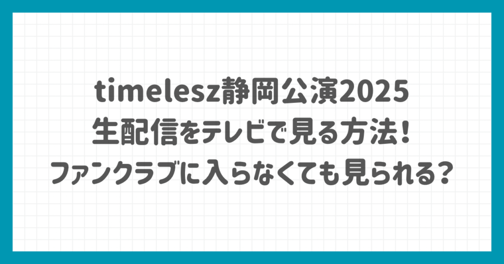 timelesz静岡公演2025生配信をテレビで見る方法!ファンクラブに入らなくても見られる?