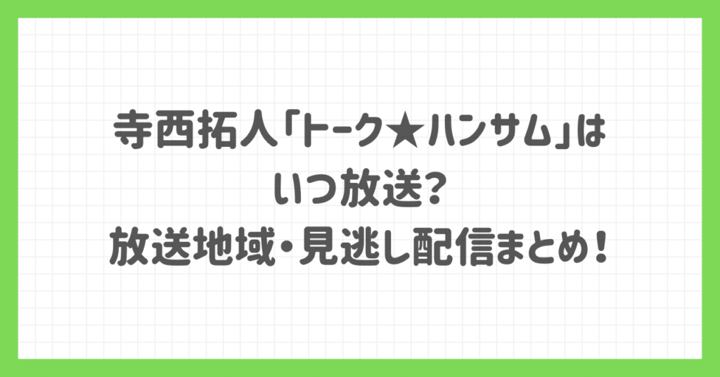 寺西拓人「トーク★ハンサム」はいつ放送?放送地域・見逃し配信まとめ!