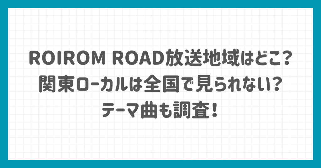 ROIROM ROAD(ロイロムロード)放送地域はどこ?関東ローカルは全国で見られない?テーマ曲も調査!