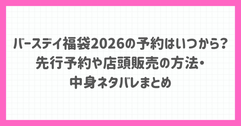 バースデイ福袋2026の予約はいつから?先行予約や店頭販売の方法・中身ネタバレまとめ
