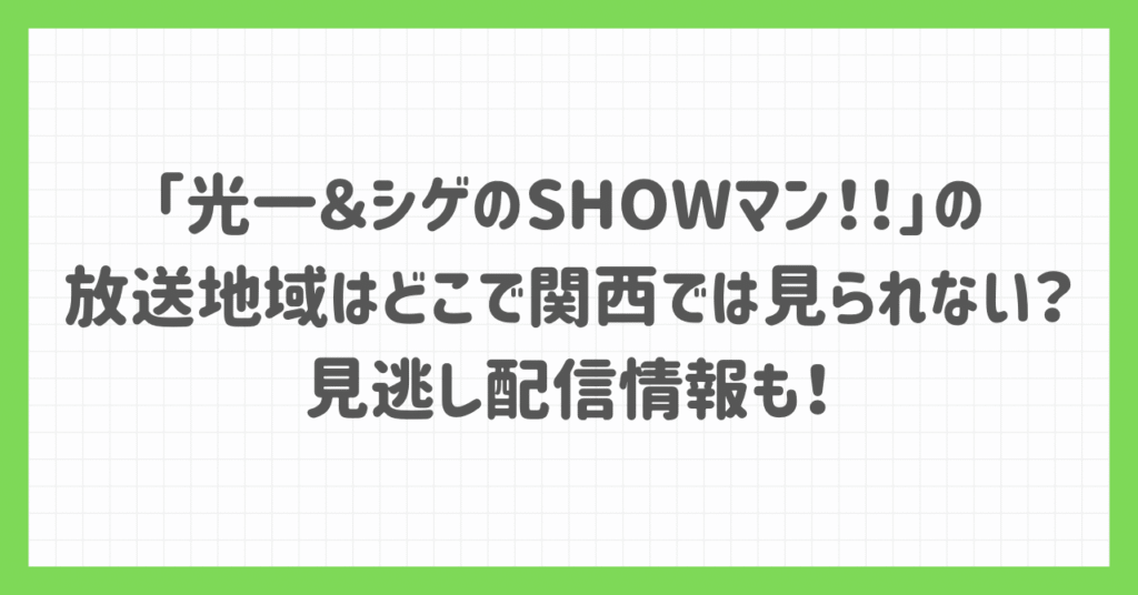 「光一&シゲのSHOWマン!!」の放送地域はどこで関西では見られない?見逃し配信情報も!