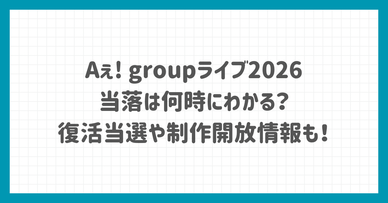 Aぇ! groupライブ2026の当落発表については、現時点で正確な発表時間は公式では発表されていません。