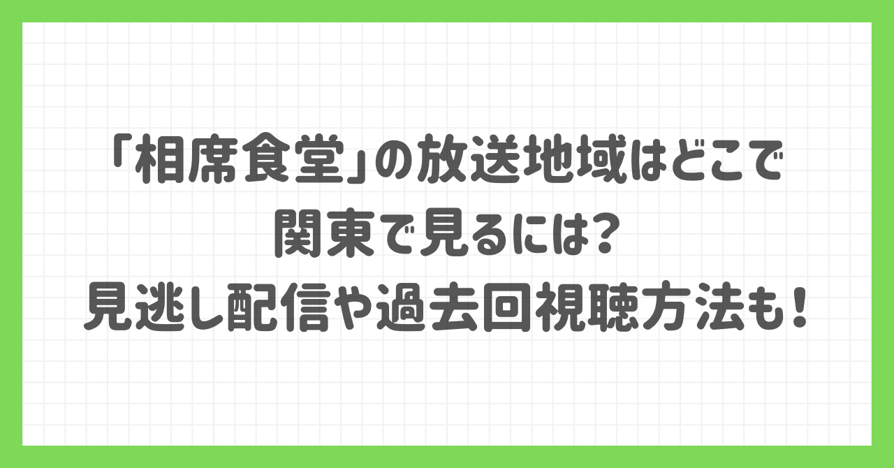 この記事では、「相席食堂」の放送地域や関東での視聴方法、見逃し配信についてまとめました。