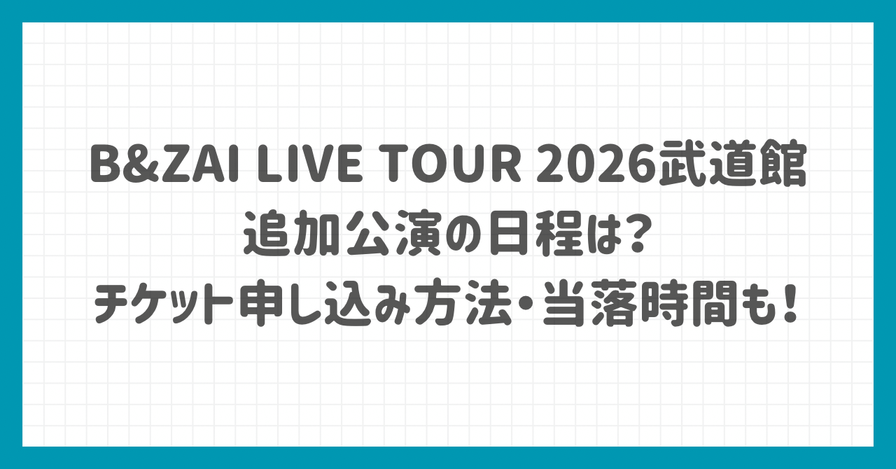 この記事では、B&ZAI武道館追加公演の日程詳細やチケット申し込み方法、当落発表時間の傾向についてわかりやすくまとめていきます。