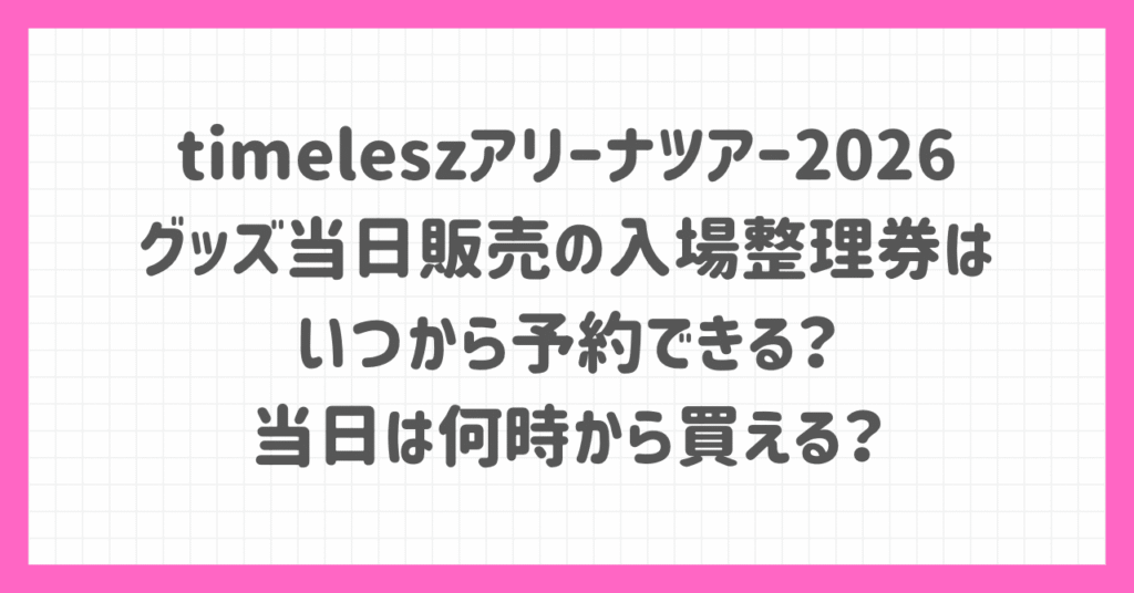 timeleszアリーナツアー2026グッズ当日販売の入場整理券はいつから予約できる?当日は何時から買える?