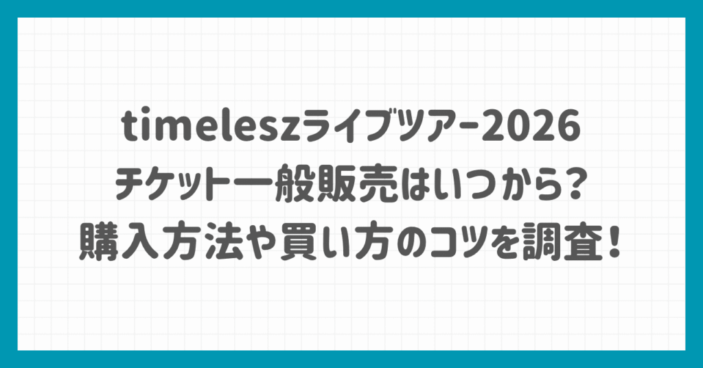 timeleszライブツアー2026チケット一般販売はいつから?購入方法や買い方のコツを調査!