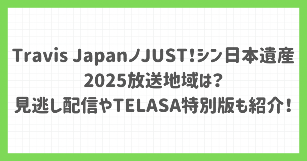 Travis JapanノJUST!シン日本遺産2025放送地域は?見逃し配信やTELASA特別版も紹介!