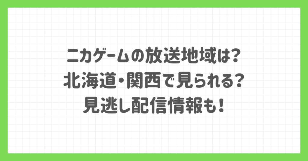 ニカゲームはどこで見れる?放送地域・見逃し配信(サブスク)情報も!