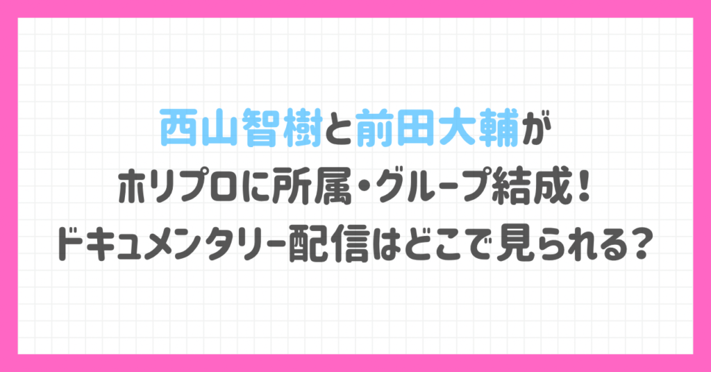 西山智樹と前田大輔がホリプロに所属・グループ結成!ドキュメンタリー配信はどこで見られる?