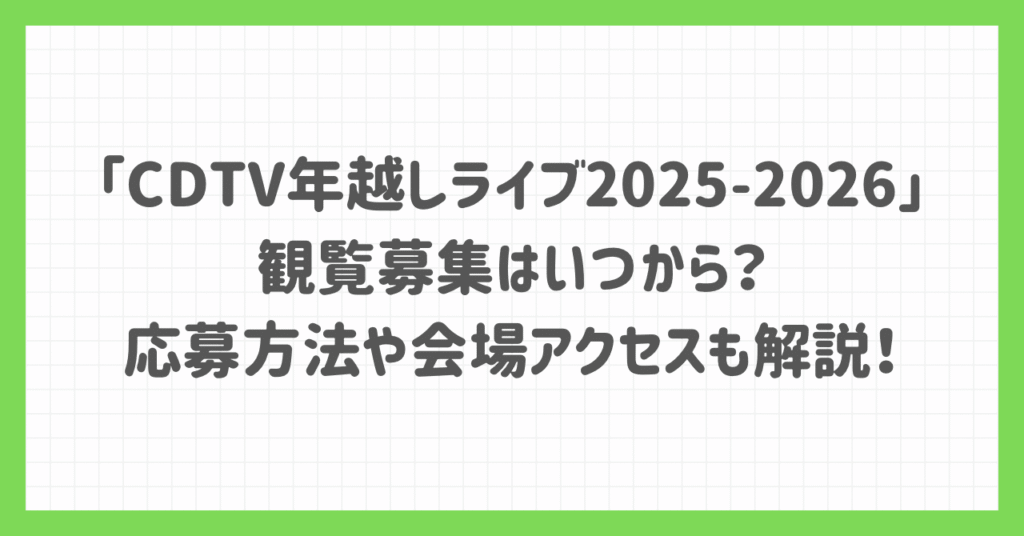 「CDTV年越しライブ2025-2026」観覧募集はいつから?応募方法や会場アクセスも解説!