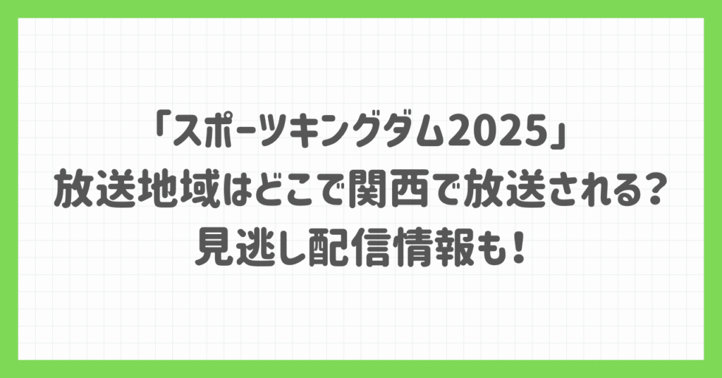 「スポーツキングダム2025」放送地域はどこで関西で放送される?見逃し配信情報も!