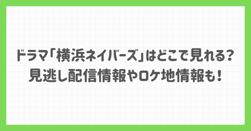 ドラマ「横浜ネイバーズ」はどこで見れる?見逃し配信情報やロケ地情報も!