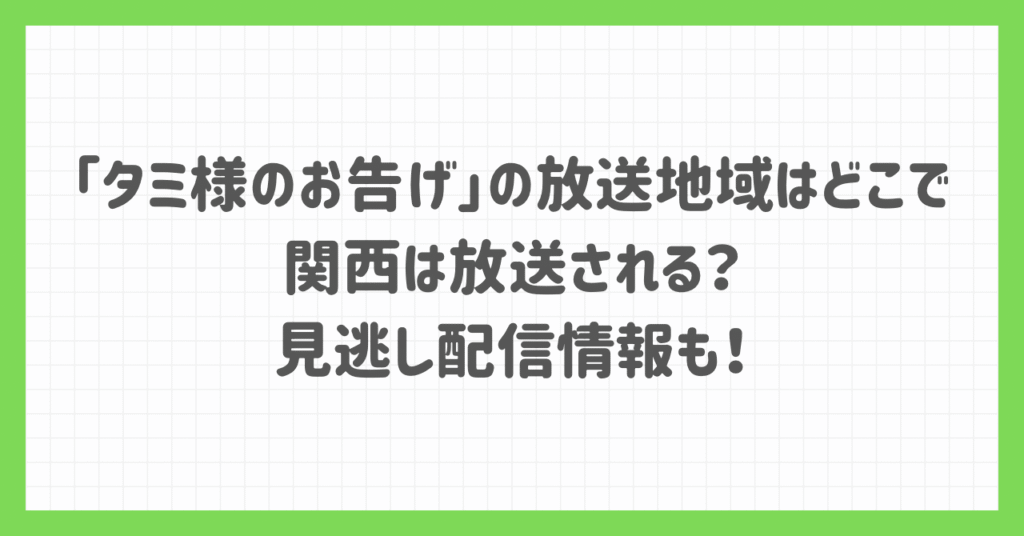 「タミ様のお告げ」の放送地域はどこで関西は放送される?見逃し配信情報も!
