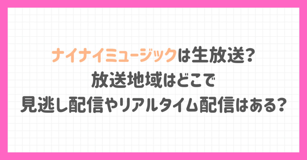 ナイナイミュージックは生放送?放送地域はどこで見逃し配信やリアルタイム配信はある?