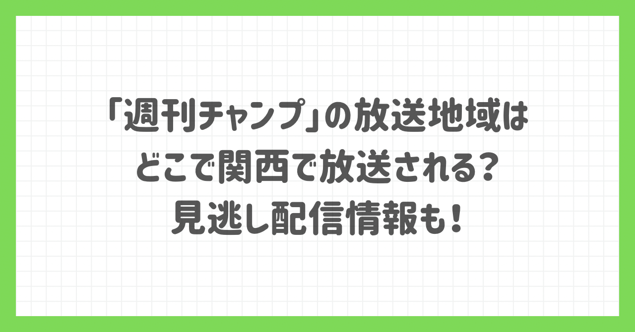 そこで、この記事では「週刊チャンプ」の放送地域・関西での放送予定・TVerでの見逃し配信情報などについてまとめました。