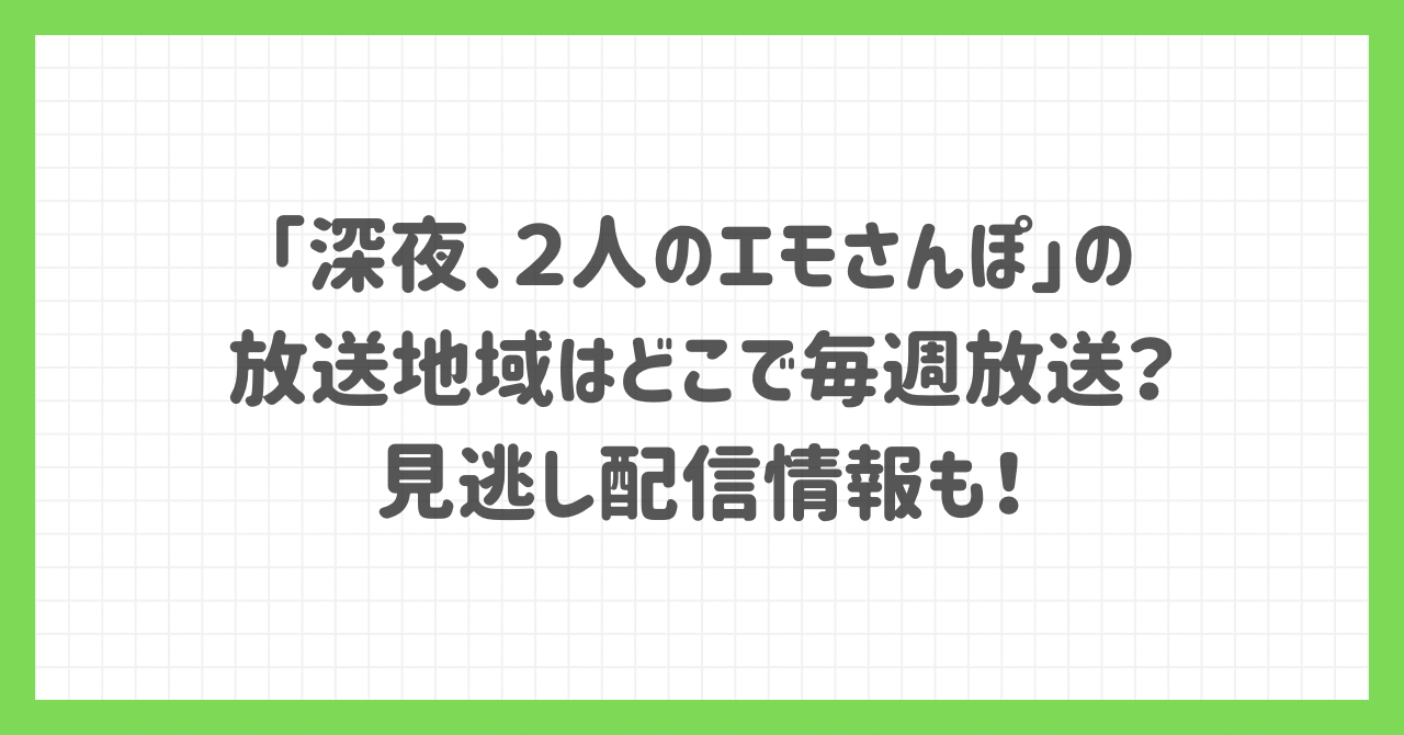 そこでこの記事では、「深夜、2人のエモさんぽ」の放送地域はどこなのか・毎週放送されるのか・TVerなどの見逃し配信情報をわかりやすくまとめました。