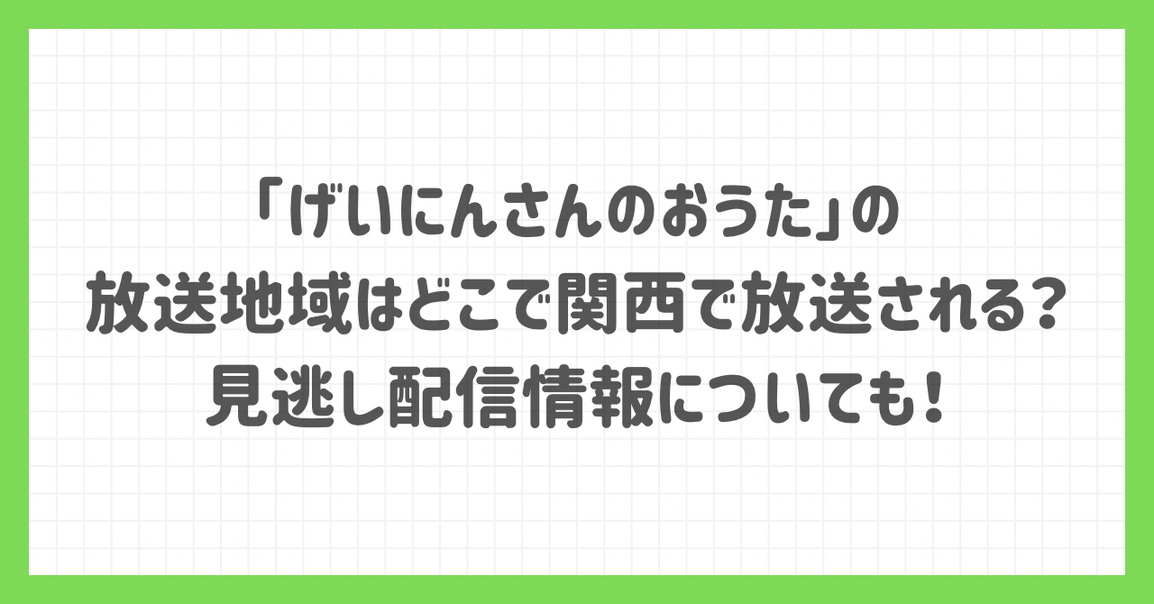 そのため、「げいにんさんのおうた」を関西で見たい場合には見逃し配信を利用するようにしましょう。
