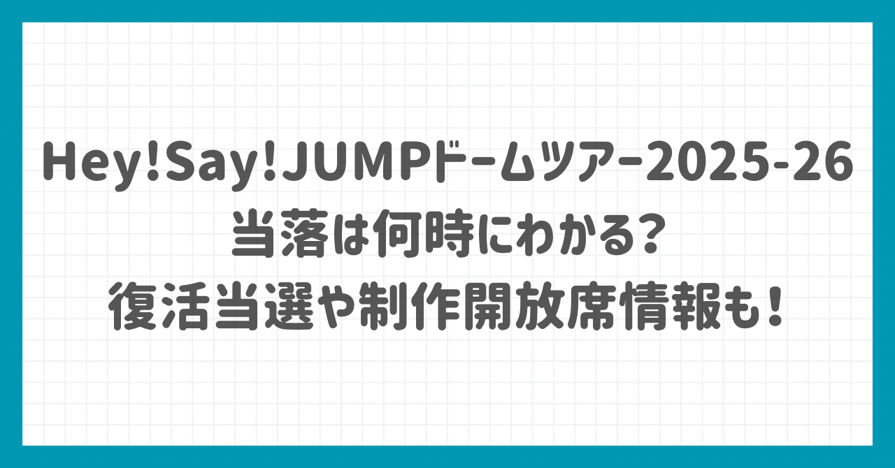 そこでこの記事では、Hey!Say!JUMPドームツアー2025-26の当落は何時にわかるのか、復活当選や制作開放席情報についても調査してみました。