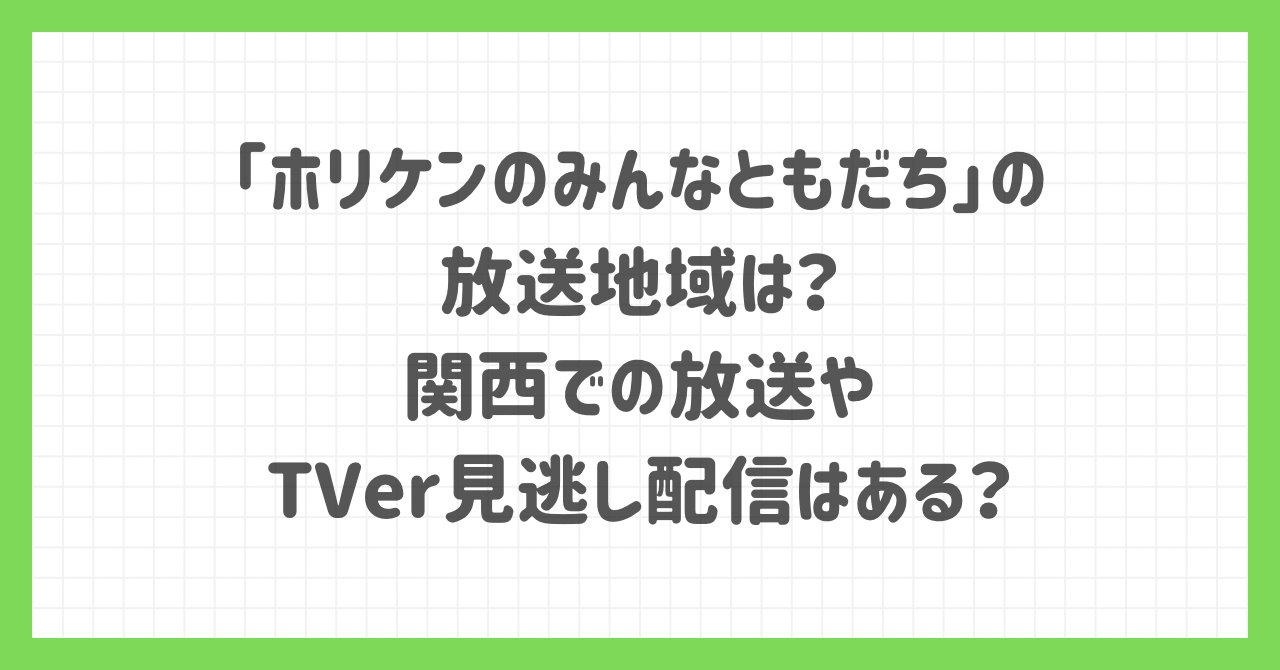 「ホリケンのみんなともだち」は現時点では関西で放送されないことがわかっています。