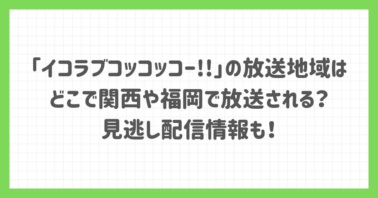 「イコラブコッコッコー!!」は関東ローカル放送となっているため、「関西では見られるの?」「福岡や地方でも放送される?」と、放送地域が気になっている方も多いのではないでしょうか。