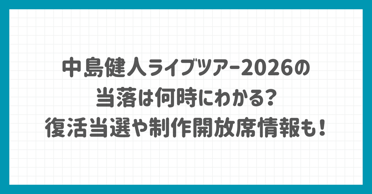 以下の項目(制作開放席の当落結果)にて、中島健人ライブツアー2026の制作開放席の案内メールが届く日程予想をしているのでチェックしてみてください!