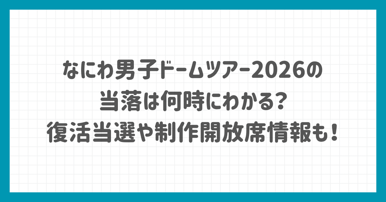 そこでこの記事では、なにわ男子ドームツアー2026の当落は何時にわかるのか、復活当選や制作開放席情報につて調査してみました。